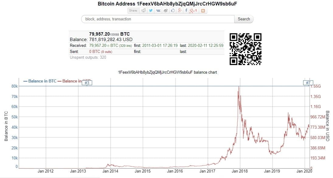 Hampir 80.000 BTC di Address Bitcoin 1FeexV6bAHb8ybZjqQMjJrcCrHGW9sb6uF Tidak Bergerak