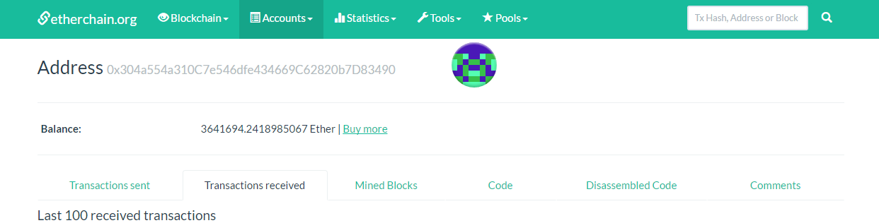 Kebocoran yang ditemukan dari kerentanan DAO itu ditemukan di address 0x304a554a310c7e546dfe434669c62820b7d83490. Pada address tersebut telah terdapat balance sebesar 3641694.2418985067 Ether. Jumlah tersebut berhasil di raih pada kurun waktu 16 jam terakhir, saat penyerang berhasil merobek pertahanan DAO.