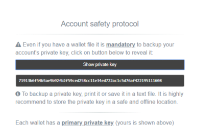 - Walaupun pada file wlt sudah tersimpan Private Key, Anda disarankan mencadangkannya secara manual. Untuk itu klik Show Private Key. Salin private key dan simpan ke file notepad.