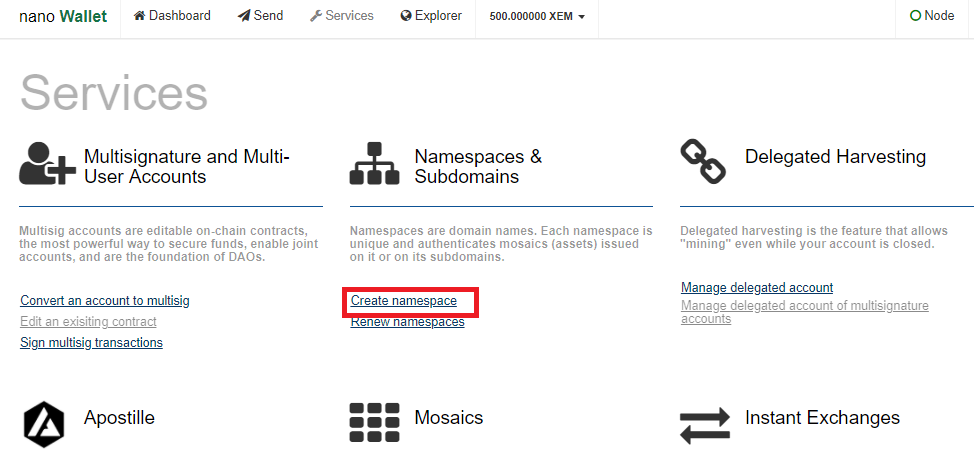 - Pada langkah ini, saya mengasumsikan Anda telah memiliki deposit yang cukup. Saat ini di NanoWallet saya punya 500 XEM.