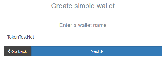 - Pada tampilan berikutnya ketikkan nama wallet Anda, misalnya TokenTestNet lalu klik Next.